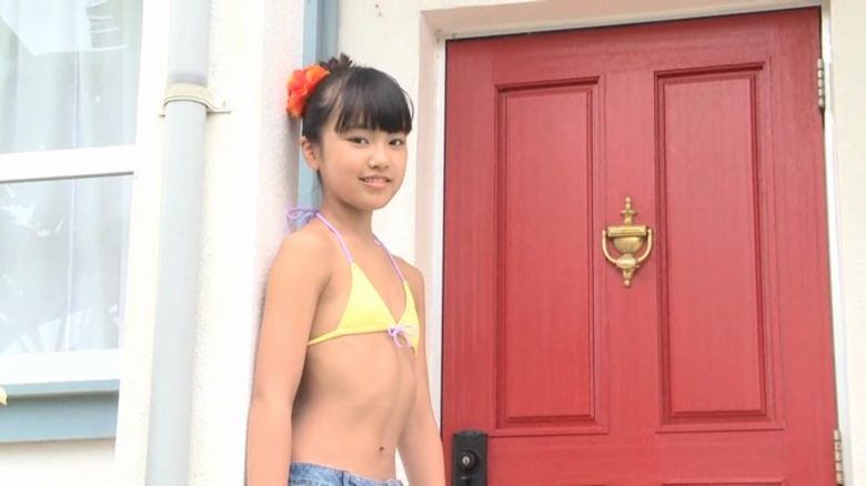 かがんだり胸を突き出したりとちいさなおっぱいをアピールしてくれます。かなり面積の狭い水着の下の部分に接写して、もう少しでマンマンが見えそうになっています。毛が確認できないのはまだ生えてないからなのでしょうか。